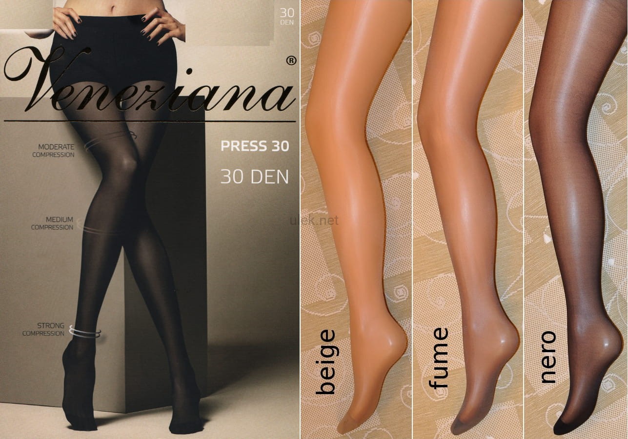 Rajstopy Veneziana Press 30 DEN. Rajstopy elastyczne, Lycra, podwójna osnowa, relaksujące ze stopniowanym uciskiem. Rajstopy mają wzmocnioną część majtkową o średnim ucisku z bawełnianym klinem, oraz wzmocnione palce i wyprofilowaną piętę. Ułatwiają prawidłowe krążenie, zapobiegaja zmęczeniu i opuchliźnie. Press 30 DEN dobrze się noszą, nie zsuwają się i doskonale wyglądają. Atrakcyjne rajstopy