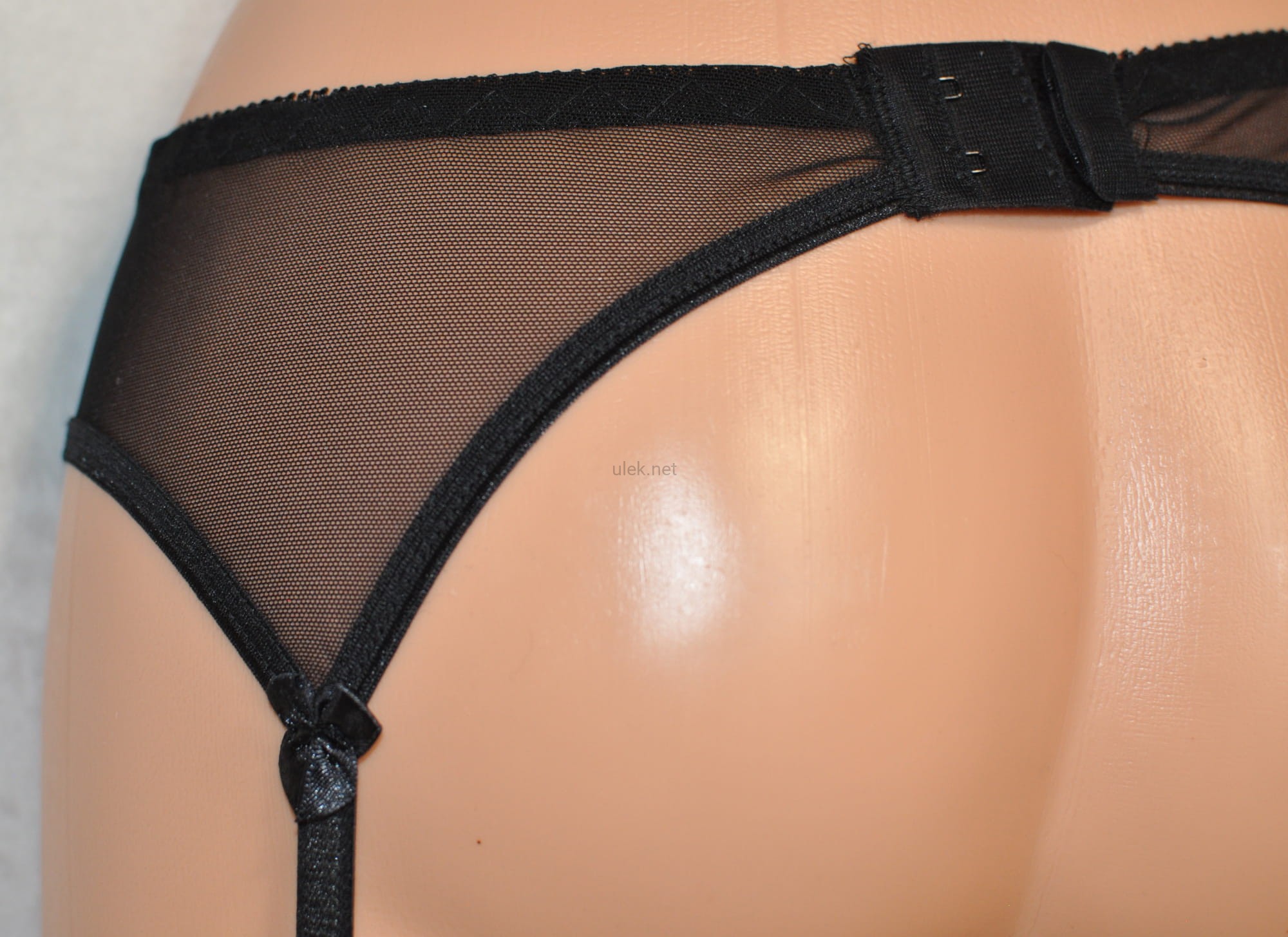 Pas do pończoch MERLIN firmy Moulin. Pas jest koronkowy, miły w dotyku i niezwykle elegancki. Komfortowo wykończony, dwa rzędy podwójnych haftek, usztywniony z przodu w miejscach paska podtrzymującego pończochę elastycznymi fiszbinami. Miejsca łączeń pasków ozdobione atłasowymi kokardkami. Zapięcia do pończoch metal + guma, oraz regulatory długości. Dobrze się nosi i oczywiście świetnie wygląda.