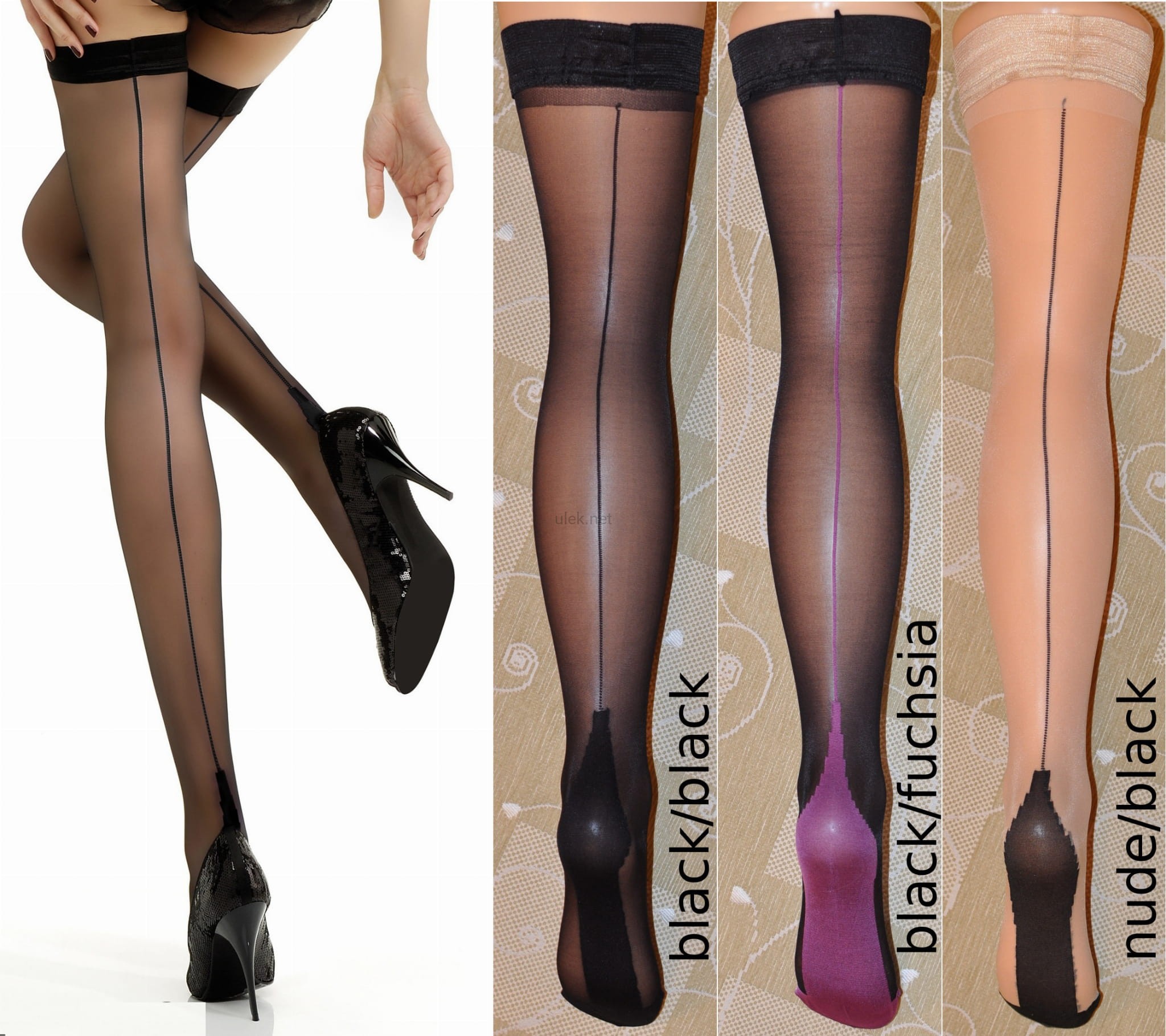 Pończochy samonośne Jonathan Aston - Contrast Seam & Heel Hold UPS, wykonane z miękkiej lycry. Pończochy elastyczne, kontrastowy szew z tyłu, palce i pięta oraz gładkie 4 cm wykończenie na silikonie. Dobrze się noszą, nie zsuwają i oczywiście pięknie wyglądają.
